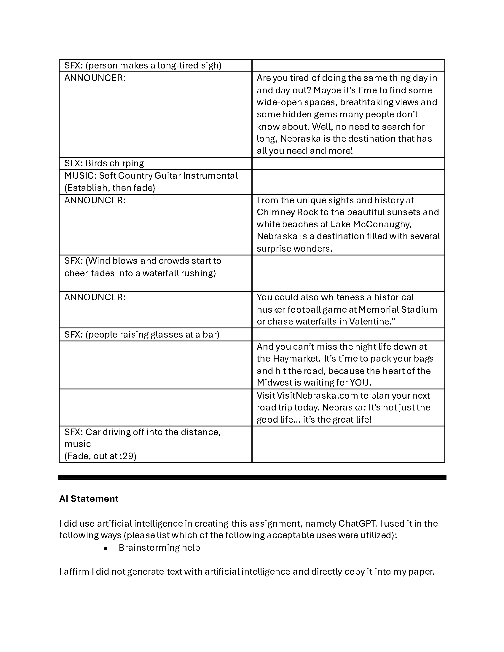 Creative Brief: Nebraska Tourism Commission